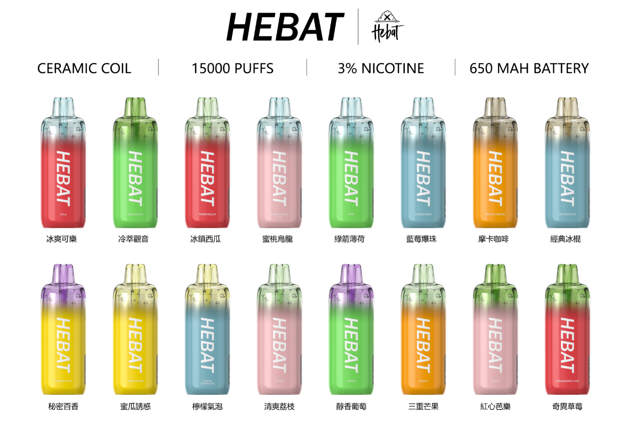 喜貝15000口 HEBAT 拋棄式一次性電子煙 產品介紹
